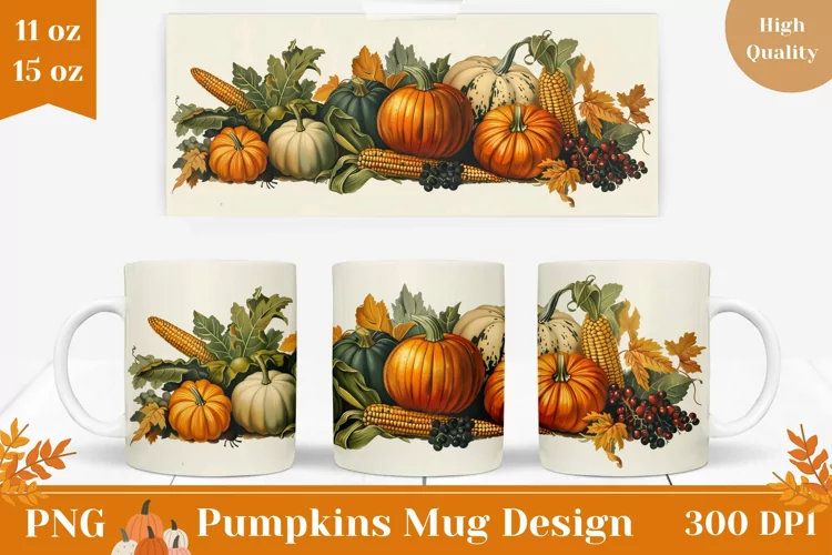 Similar Design Products to Vintage Fall Mug Wrap Design, Harvest Pumpkin Mug Template
