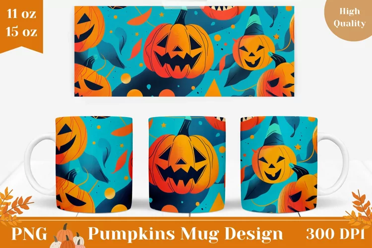 Halloween Pumpkins Mug Design, Halloween Coffee Mug Wrap