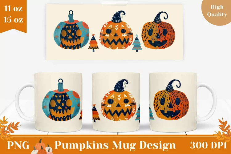 Funny Pumpkins Mug Wrap Design, Halloween Coffee Mug Wrap