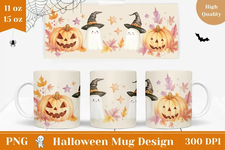 Halloween Pumpkins Mug Wrap, Funny Ghost Mug Design