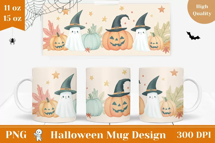 Similar Design Products to Halloween Pumpkins Mug Wrap, Kawaii Ghost Mug Sublimation