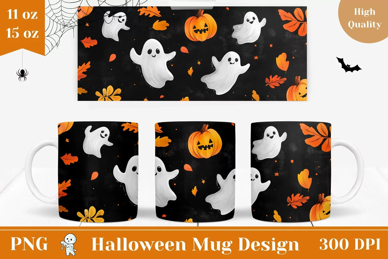 Halloween Mug Wrap Design, Fall Pumpkins Mug Wrap