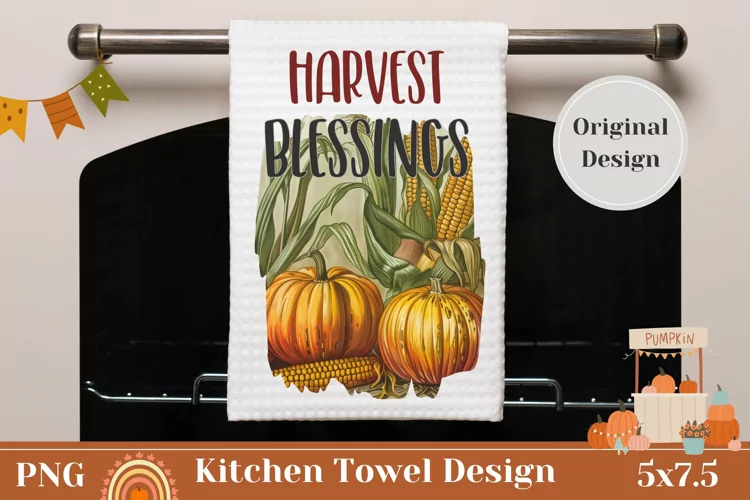 Fall Pumpkin Sublimation Kitchen Towel Sublimation Fall Towel Design Fall Kitchen Towel Harvest Kitchen Towel Sunflowers Towel Thankful Towel Harvest Blessings Towel Pumpkin Towel Design Thanksgiving Towel Png