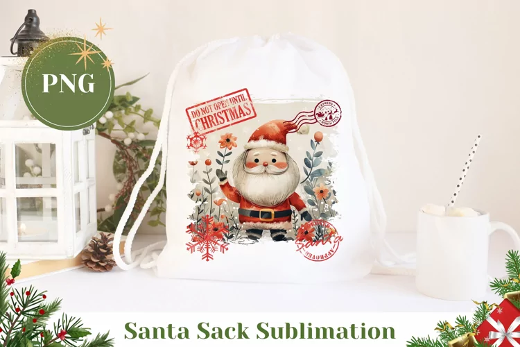 Santa Sack Design, Santa Claus Gift Bag Sublimation example image 1