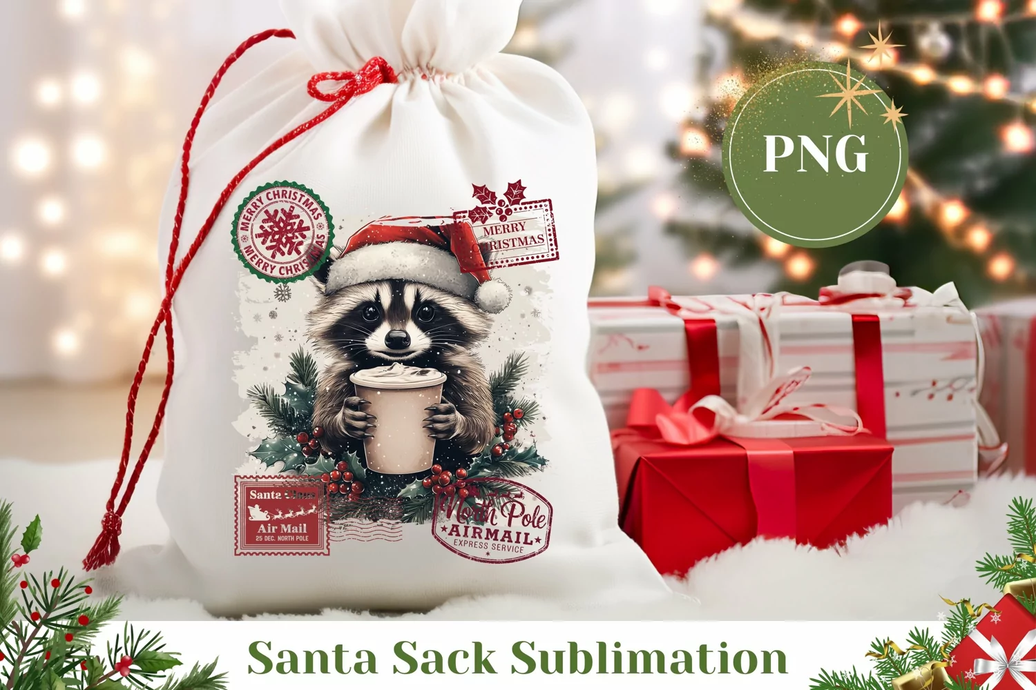 Christmas Raccoon Santa Sack, Winter Gift Bag Design example image 1
