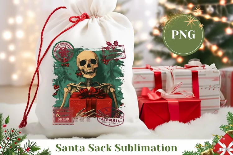 Christmas Skeleton Santa Sack, Christmas Skull Gift Bag