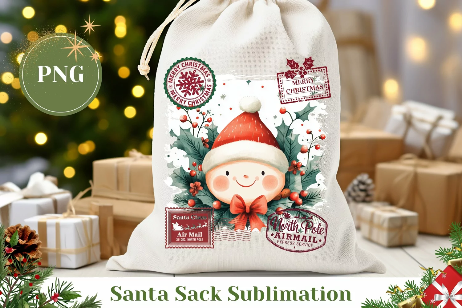 Christmas Santa Sack Sublimation, Winter Gift Bag Template example image 1