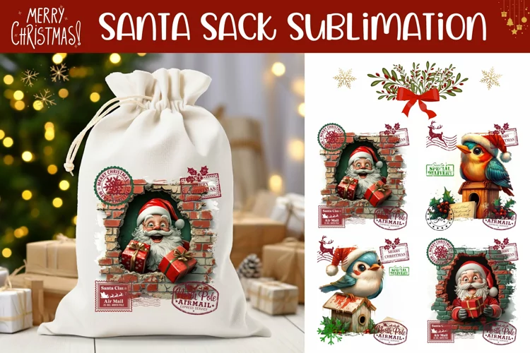 Christmas Santa Sack, 3D Christmas Gift Bag Sublimation