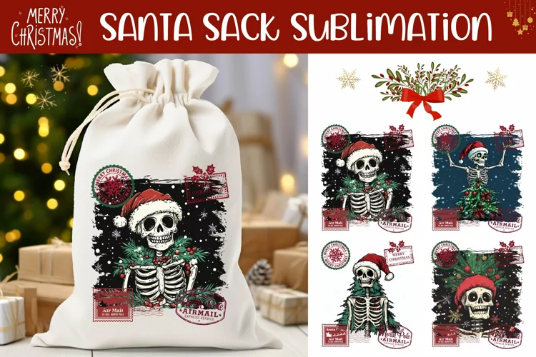 Spooky Christmas Santa Sack, Christmas Skull Gift Bag Design