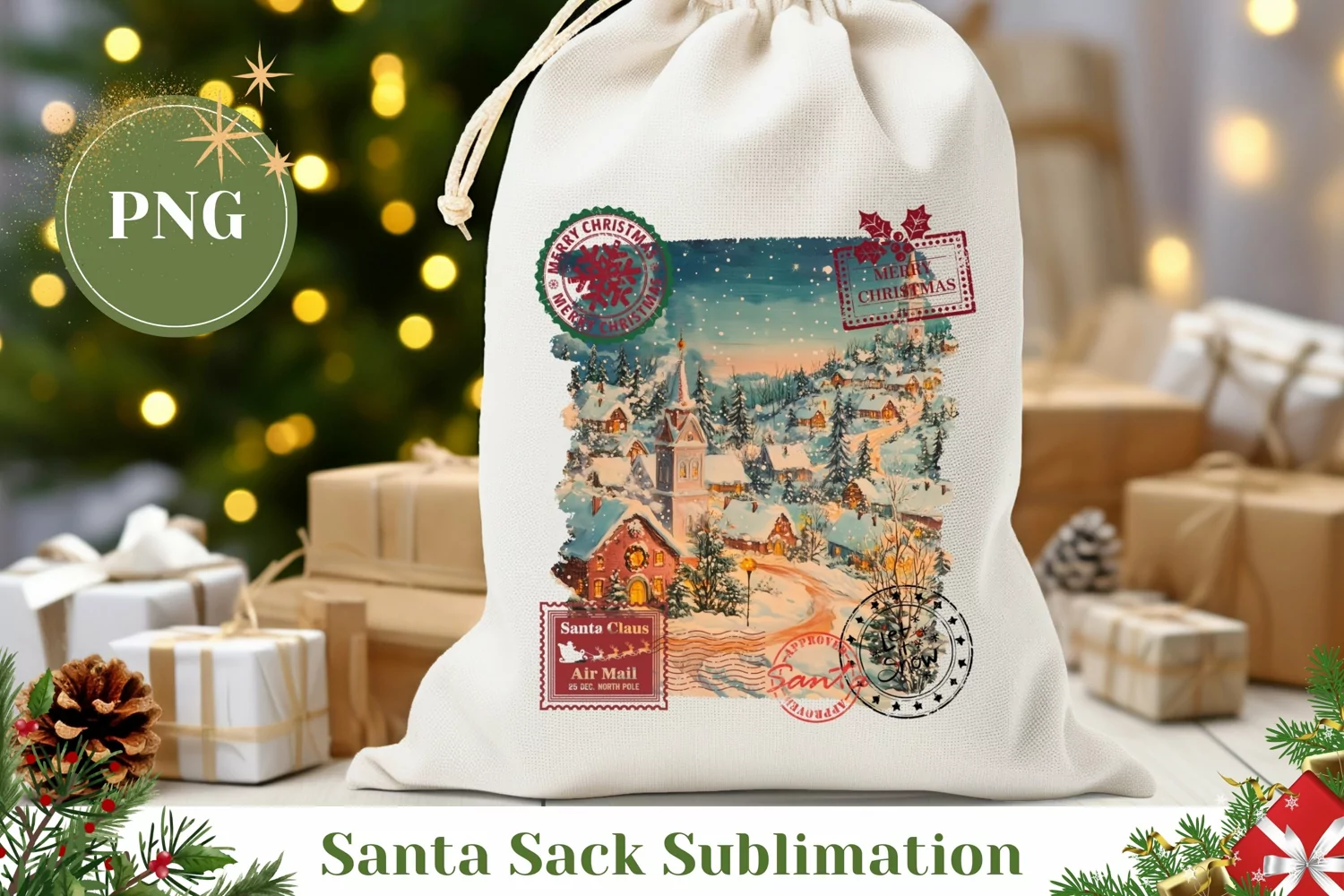 Christmas Gift Bag Christmas Bag Christmas Sack Santa Sack Design Winter Sublimation New Year Sublimation Santa Sack Sublimation Christmas Santa Sack Png Retro Christmas Sublimation Design Vintage Christmas Village Png