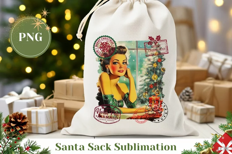 Similar Design Products to Vintage Girl Christmas Santa Sack, Retro Christmas Gift Bag