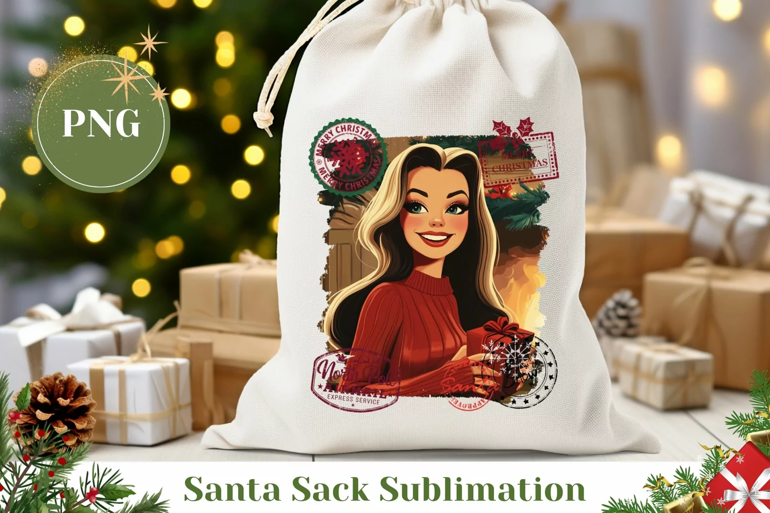 Christmas Girl Santa Sack, Christmas Fireplace PNG example image 1
