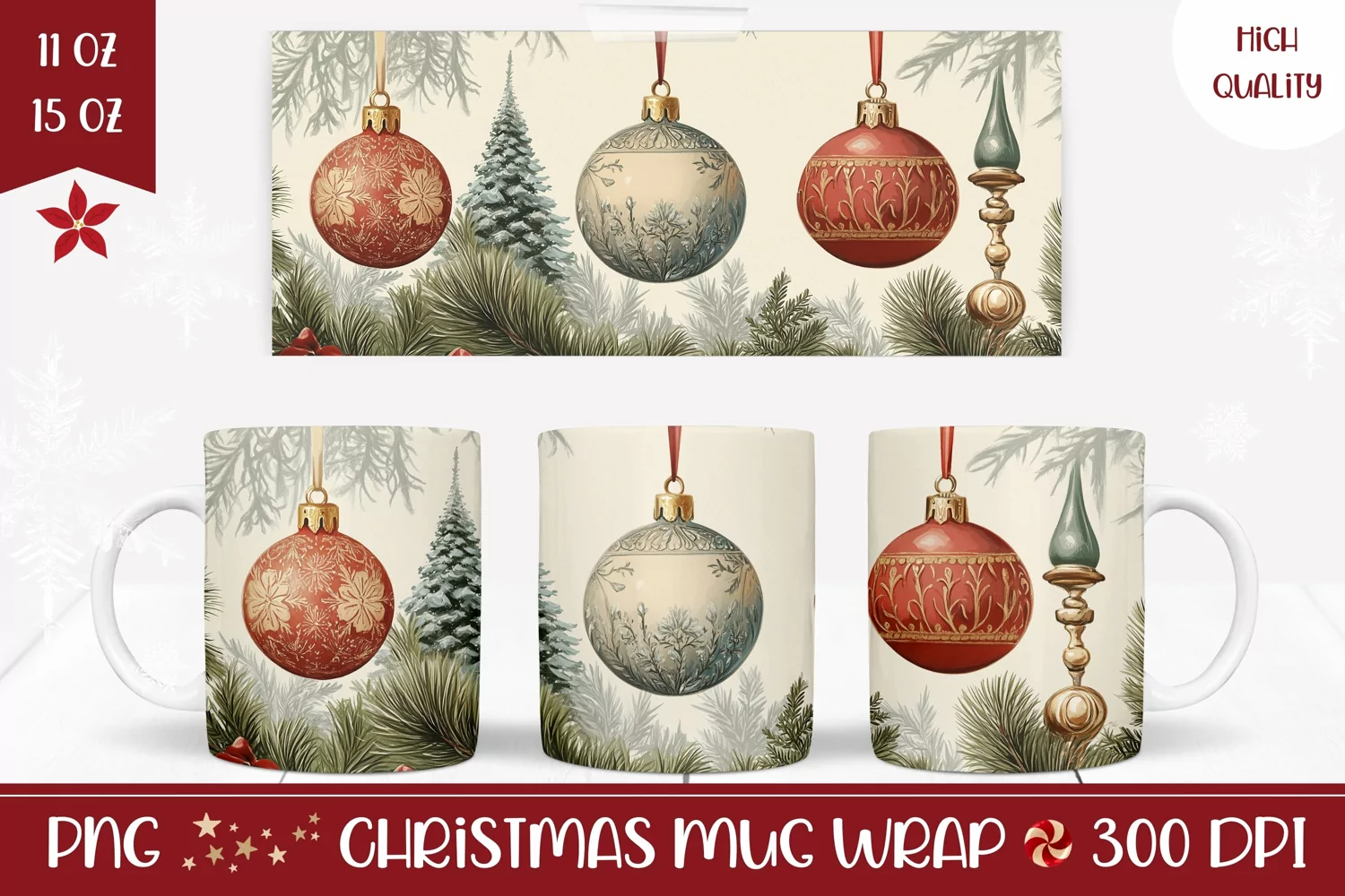 Vintage Christmas Mug Wrap Design, Christmas Sublimation Mug example image 1