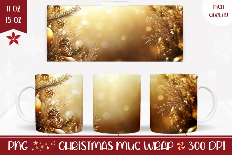 Glitter Christmas Mug Wrap, Gold Christmas Coffee Mug example image 1