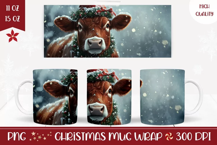 Christmas Cow Mug Wrap, Winter Coffee Mug Template