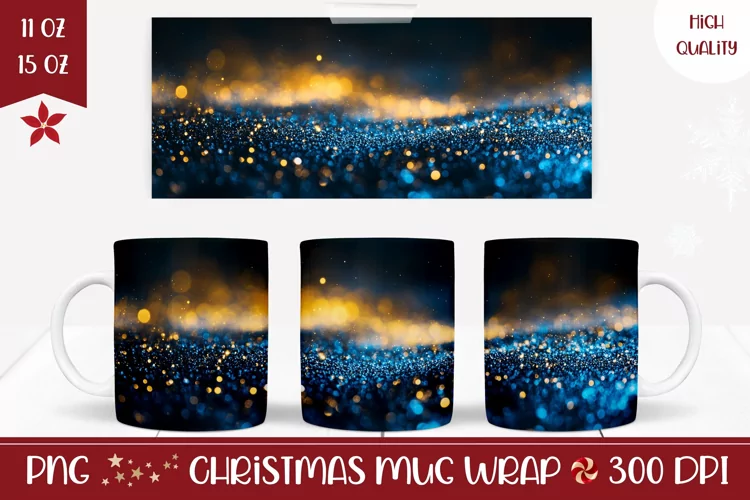 Christmas Mug Sublimation, Glitter Mug Wrap Design