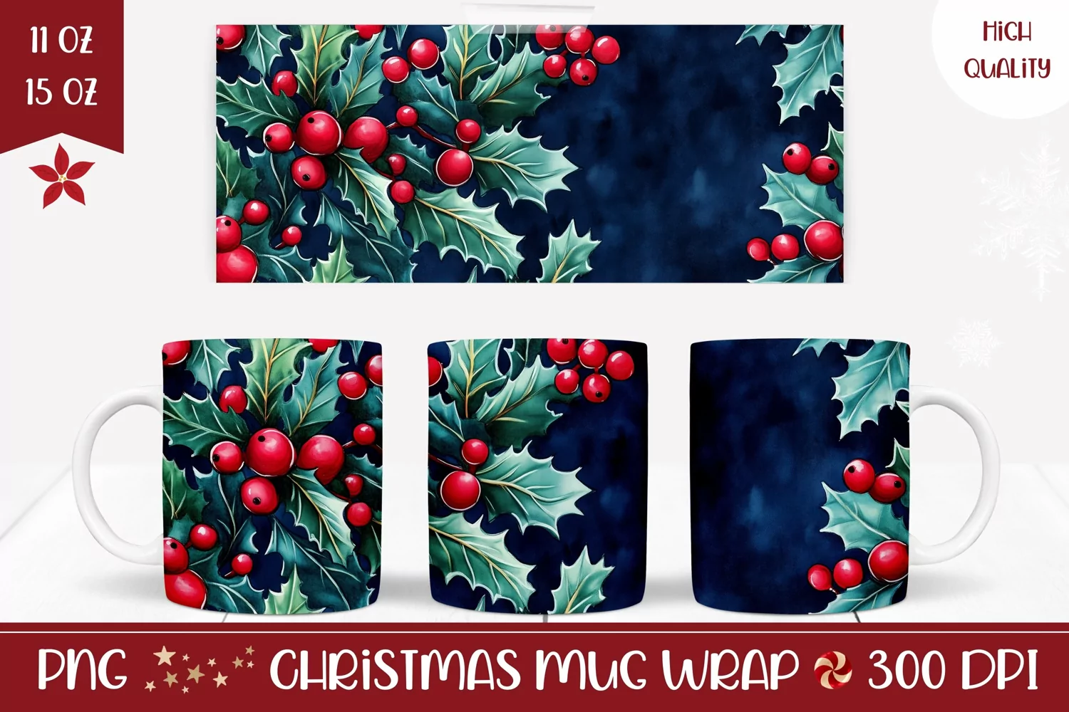Christmas Berries Mug Sublimation, Winter Coffee Mug example image 1