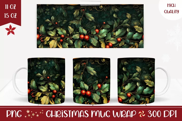 Christmas Berries Mug Sublimation, Christmas Coffee Mug example image 1