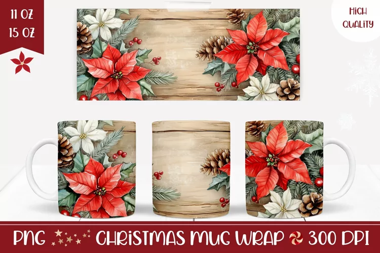 Poinsettia Mug Wrap, Cozy Christmas Mug Template