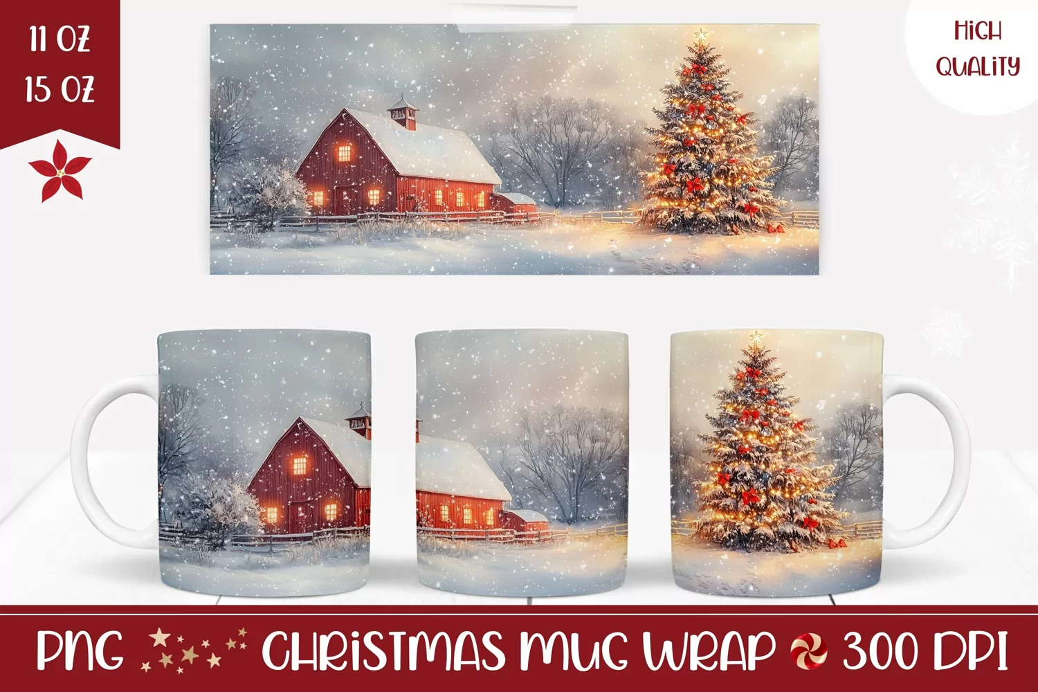 Red Barn Mug Wrap Design, Christmas Tree Coffee Mug Design example image 1