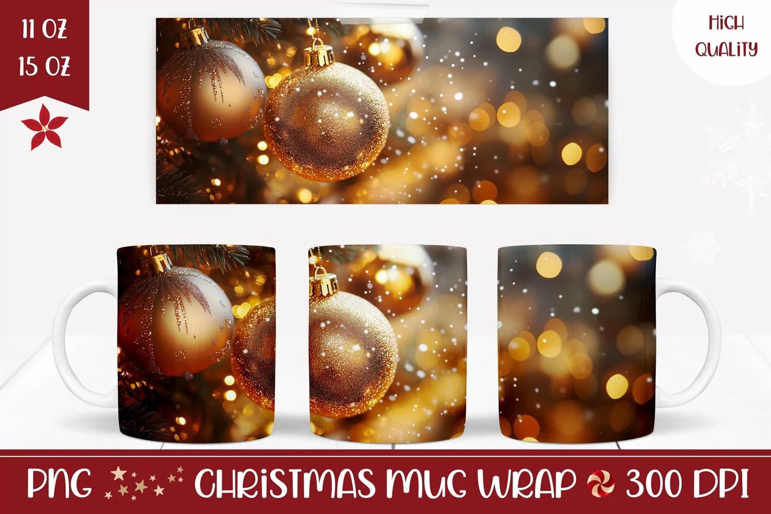 Gold Christmas Mug Sublimation, Christmas Coffee Mug Wrap