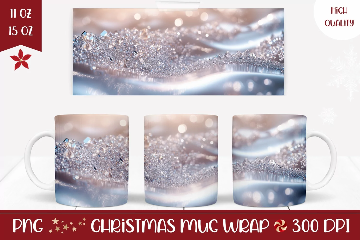 Winter Mug Template, Glitter Mug Sublimation Design