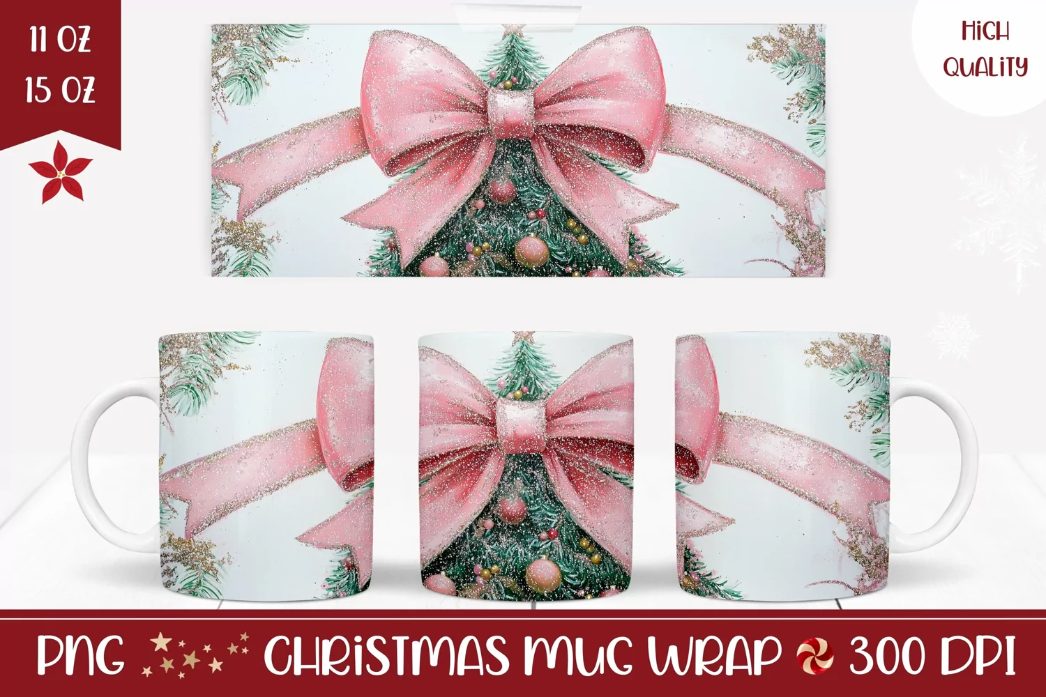 Similar Design Products to Watercolor Christmas Mug, Pink Christmas Ribbon Sublimation