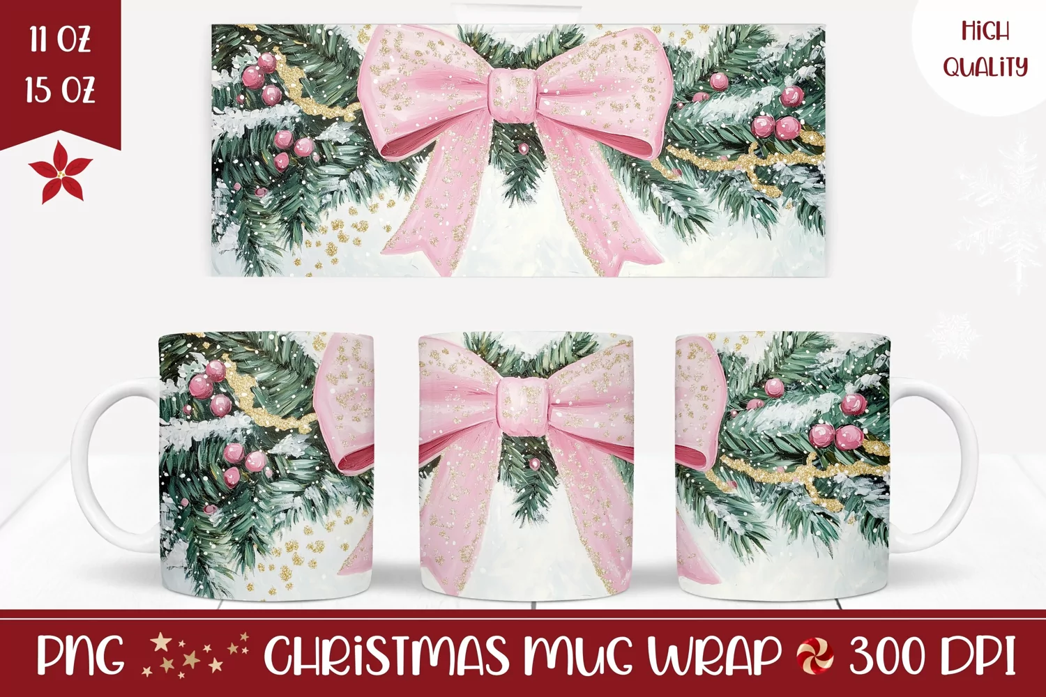 Similar Design Products to Watercolor Christmas Mug, Pink Christmas Ribbon Mug Wrap