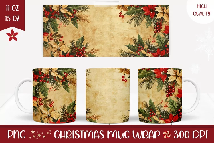 New Year Design Christmas Sublimation Design Christmas Mugs Floral Mug Winter Sublimation Png Winter Mug Wrap Xmas Mug Png Christmas Coffee Mug Sublimation Christmas Mug Sublimation Template Christmas Flowers Mug Design