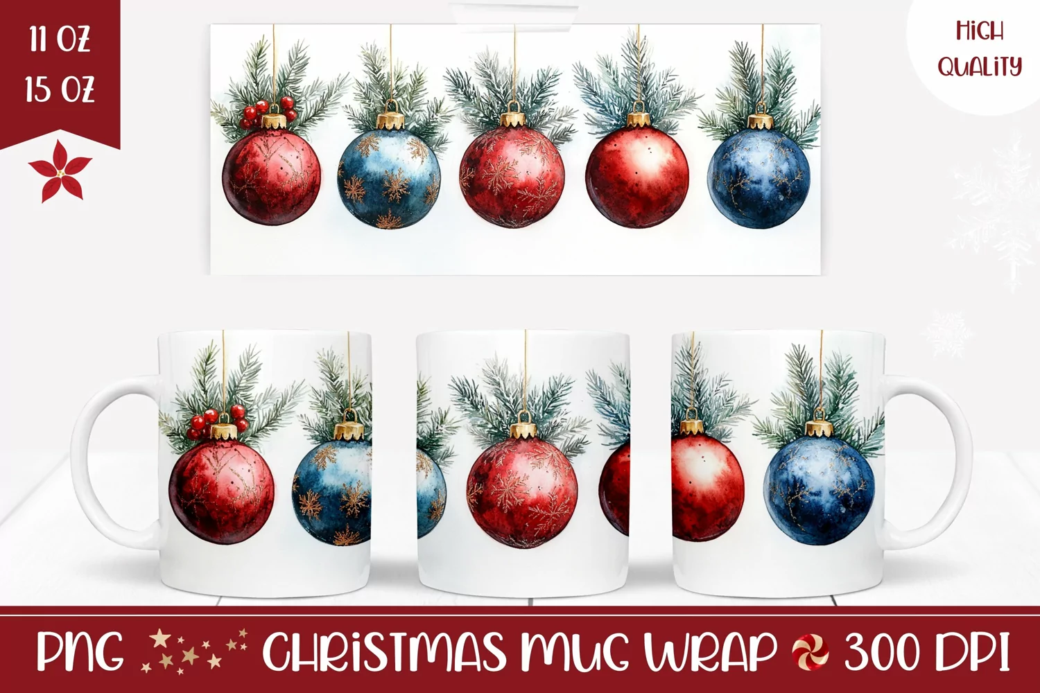 Christmas Tree Branch Mug Design, Baubles Mug Wrap example image 1