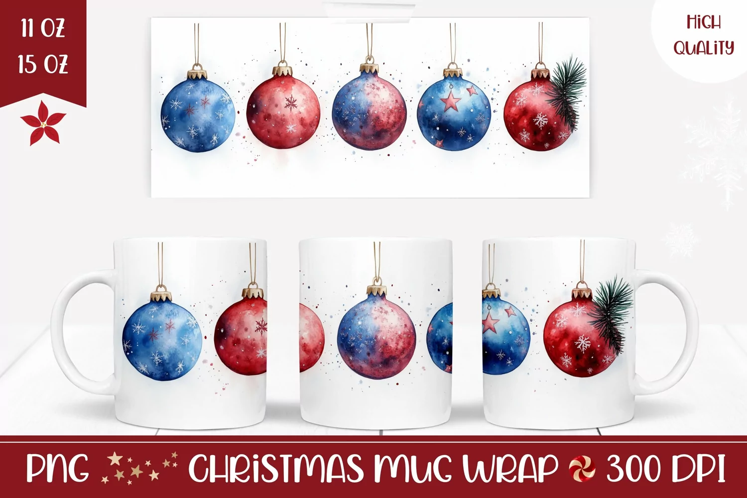 Christmas Baubles Mug Wrap, Christmas Mug Sublimation