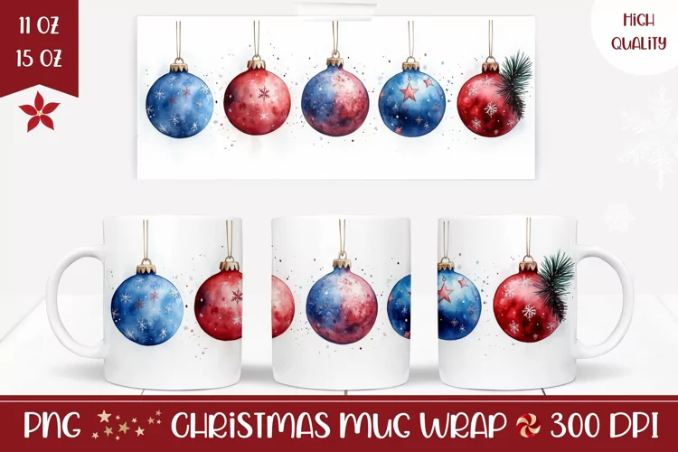 Christmas Baubles Mug Wrap, Christmas Mug Sublimation example image 1