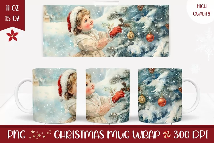 Christmas Girl Mug Wrap, Christmas Tree Mug Design example image 1
