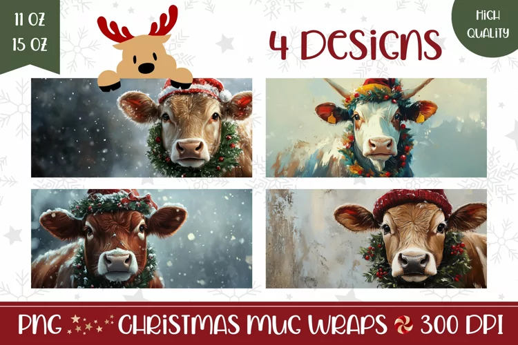 Christmas Cow Mug Design, Winter Mug Template