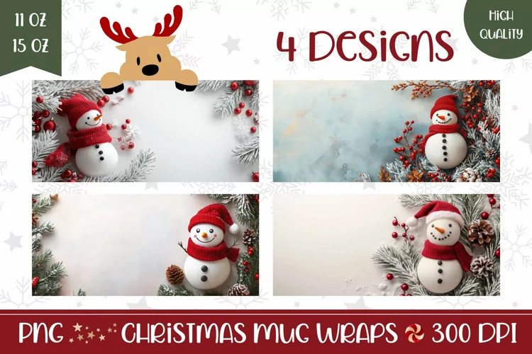 Similar Design Products to Snowman Mug Wrap Design, Christmas Mug Template