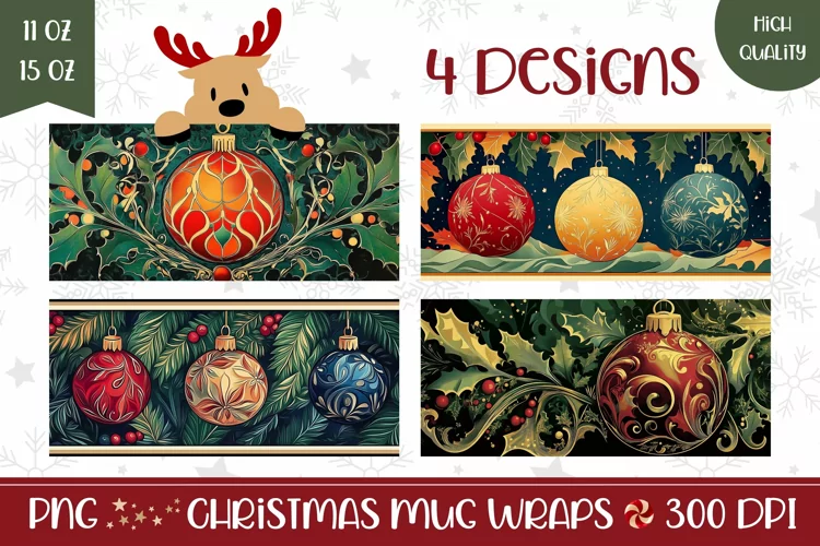 Christmas Baubles Mug Wrap, Christmas Mug Design