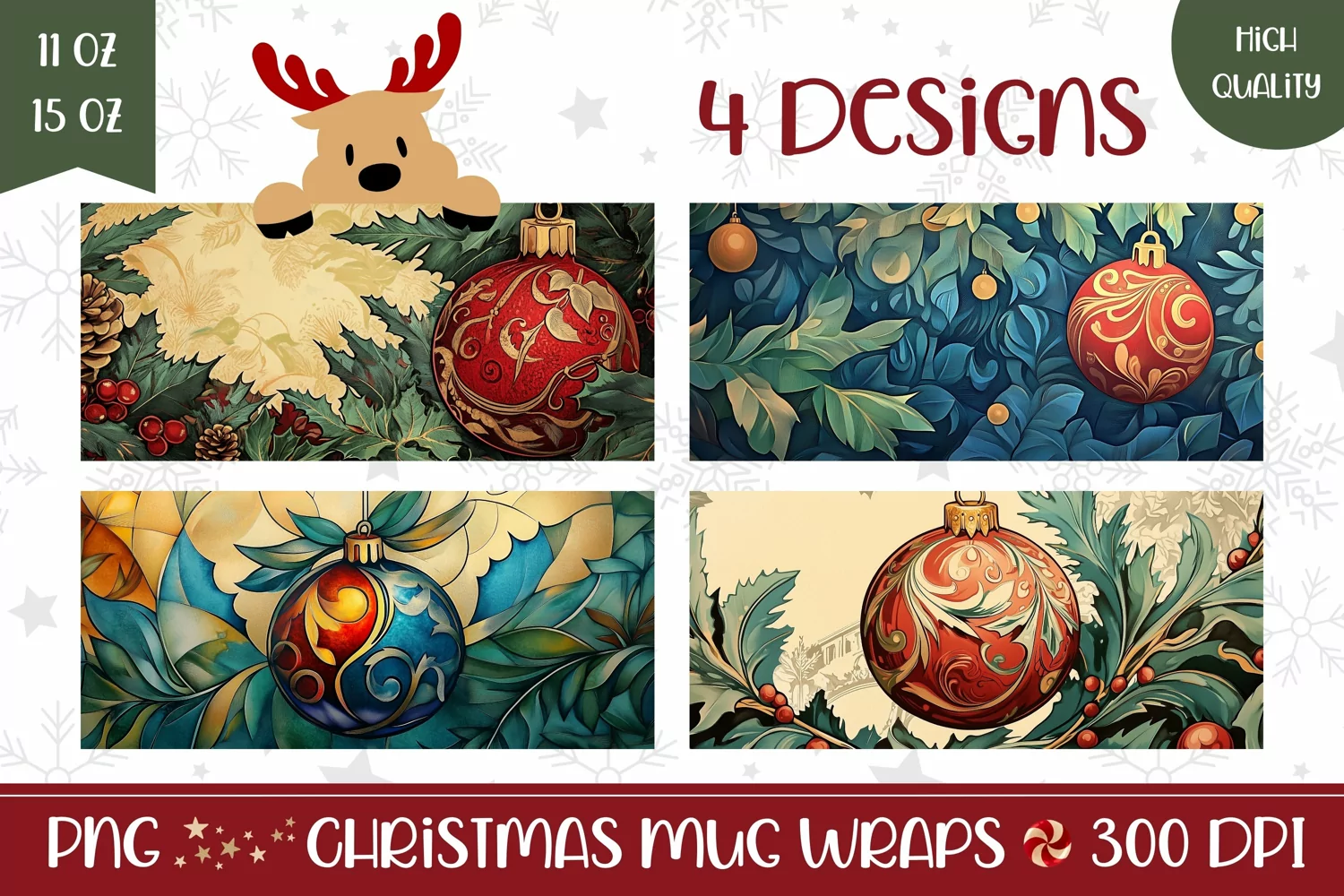 Christmas Baubles Mug Wrap, Christmas Mug Sublimation PNG example image 1
