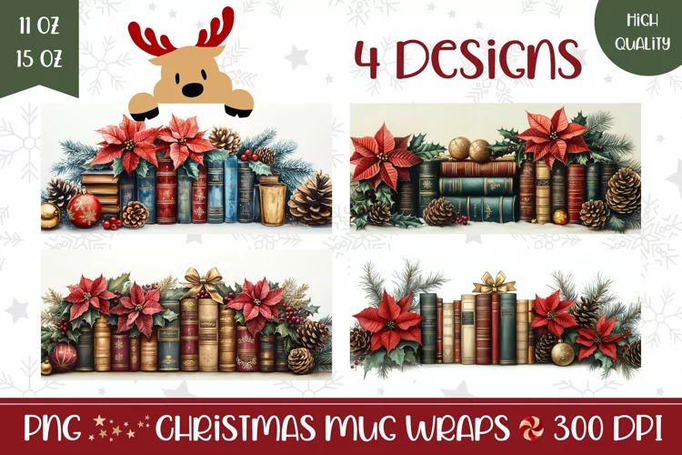 Similar Design Products to Christmas Books Mug Wrap, Christmas Mug Sublimation PNG