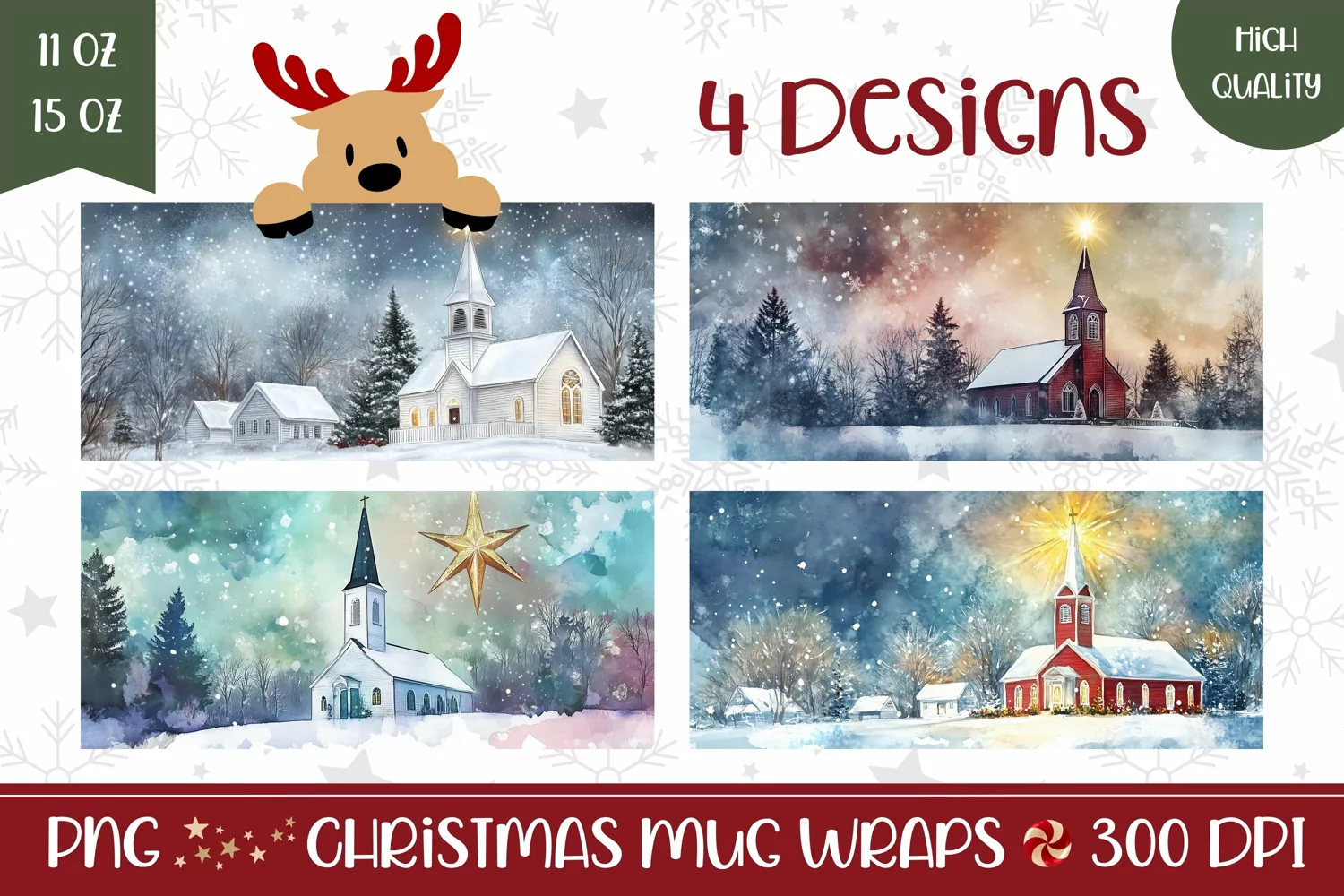 Christmas Village Mug Design, Christmas Church Mug Template example image 1