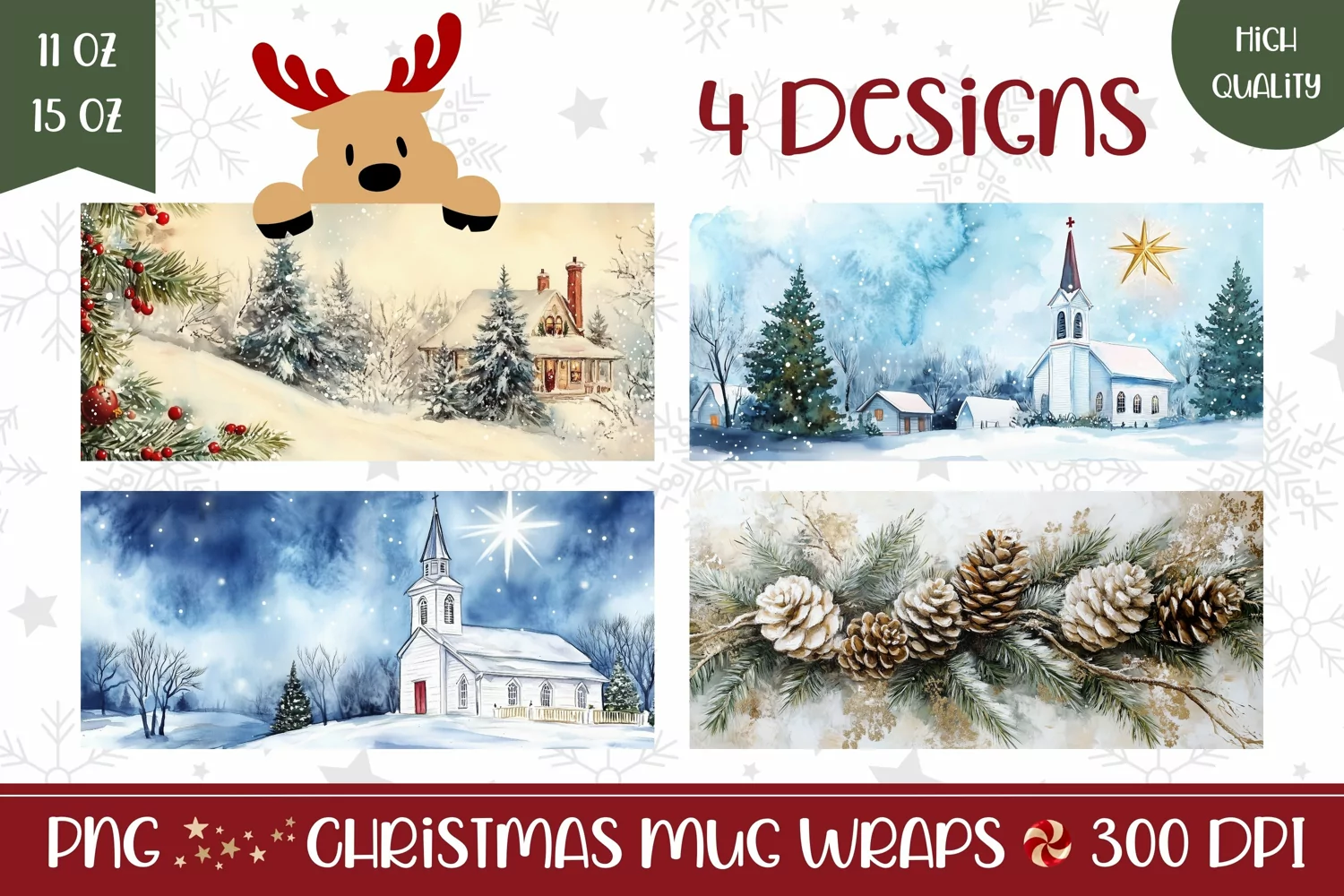 Christmas Village Mug Design, Christmas Church Mug Wrap