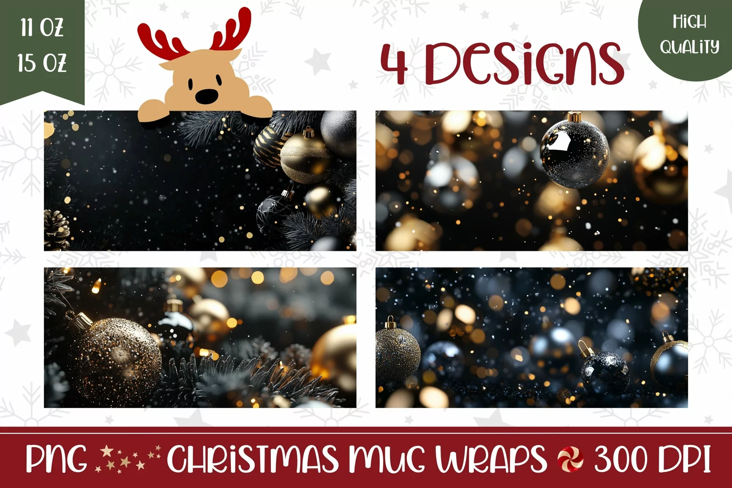 Christmas Baubles Mug Design, Christmas Mug Wrap