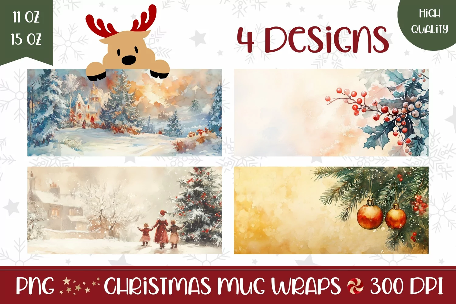 Watercolor Christmas Mug Design, Winter Tree Mug Template