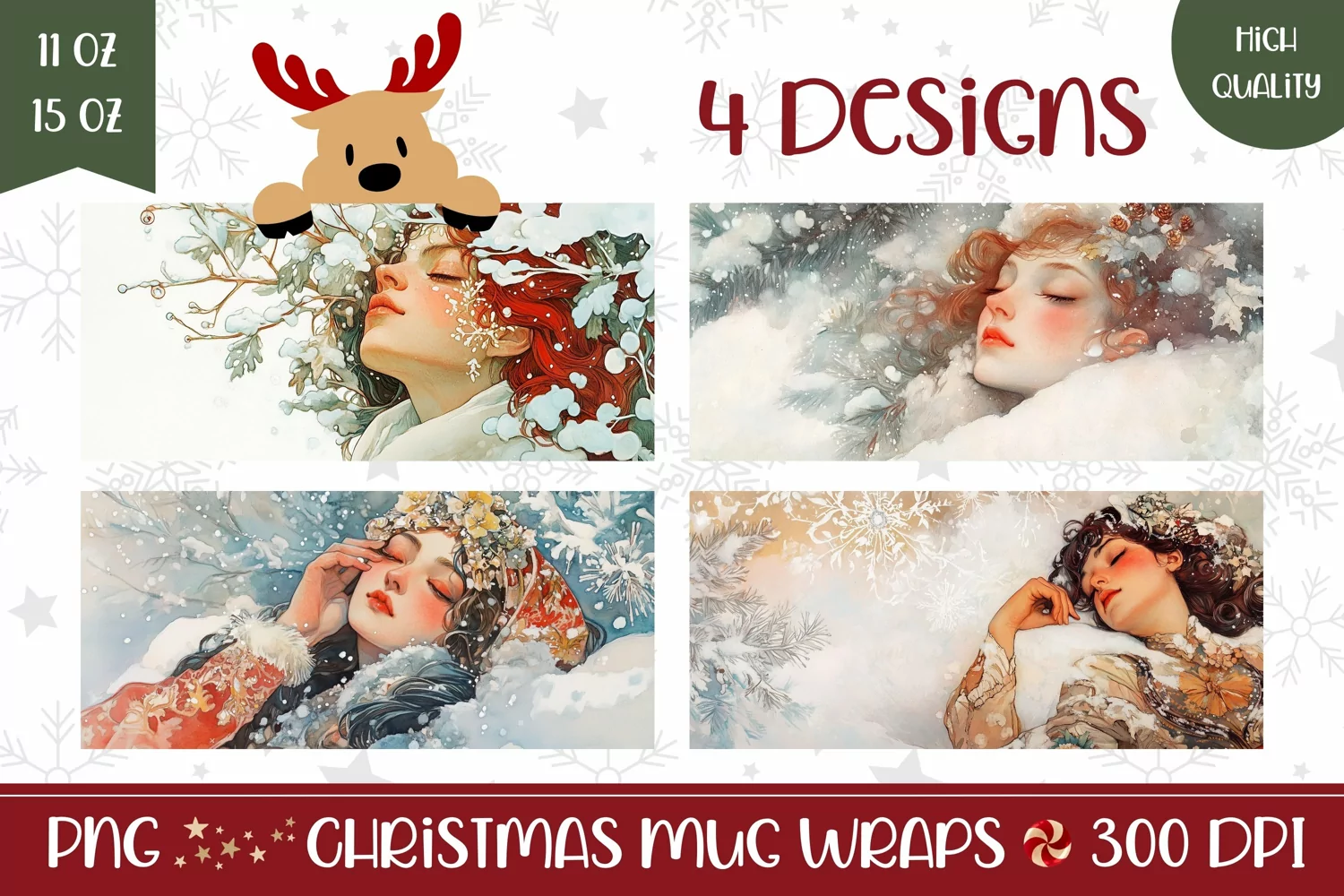 Watercolor Christmas Mug Design, Winter Woman Mug Template