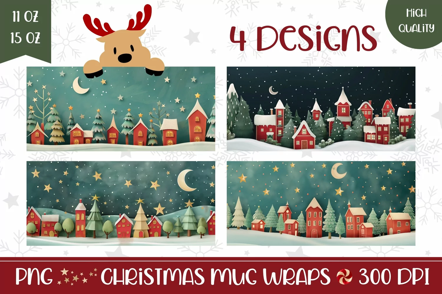 Christmas Village Mug Design, Winter Village Mug Wrap