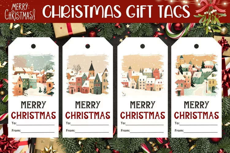 Cartoon Winter Village Gift Tags, Winter Gift Tag Printable