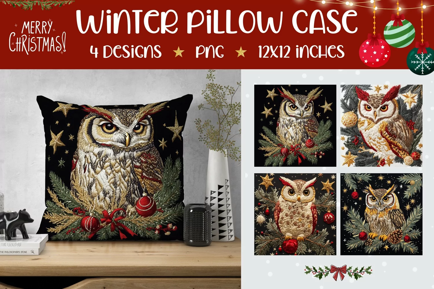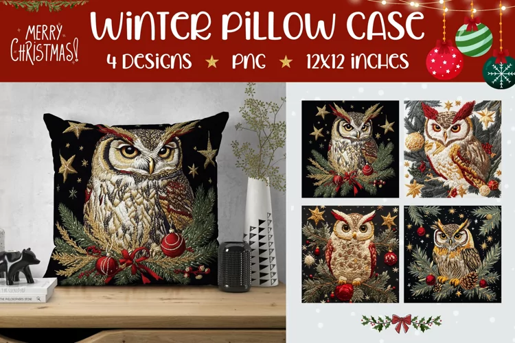 Similar Design Products to Christmas Owl Pillow Case Designs, Christmas Pillowcase PNG