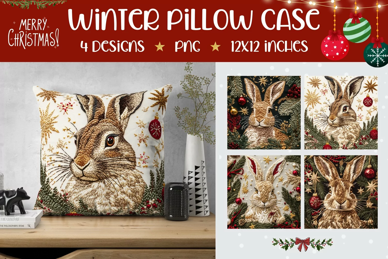 Similar Design Products to Christmas Hare Pillow Case Designs, Christmas Pillowcase PNG