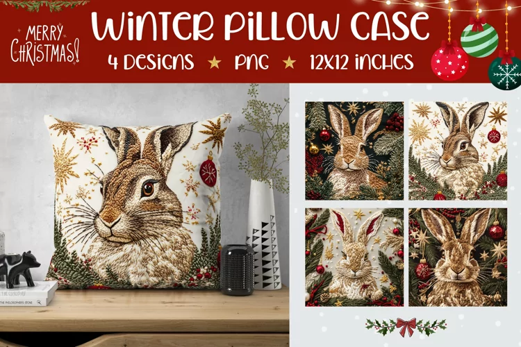 Christmas Hare Pillow Case Designs, Christmas Pillowcase PNG example image 1
