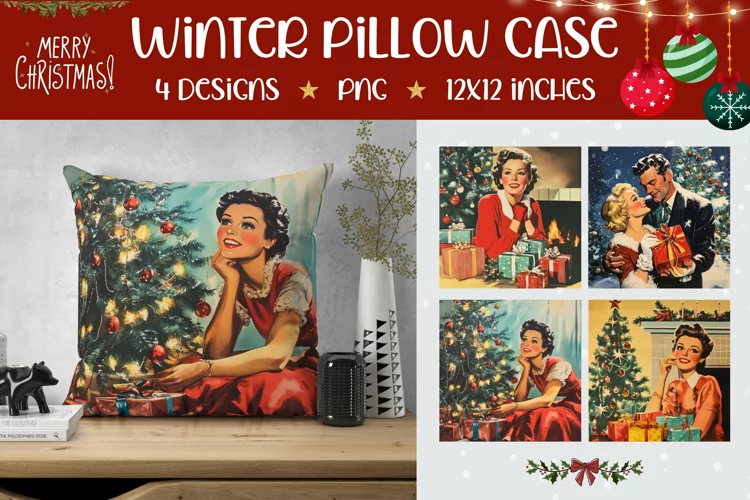 Similar Design Products to Retro Christmas Woman Pillowcase, Christmas Pillow Case PNG