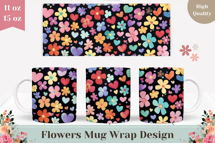 Coffee Mug Template Love Mug Design Summer Mug Valentines Mug Design Spring Sublimation Designs Floral Mug Flowers Mug Sublimation Love Hearts Mug Wrap Love Coffee Mug Designs Cartoon Flowers Png